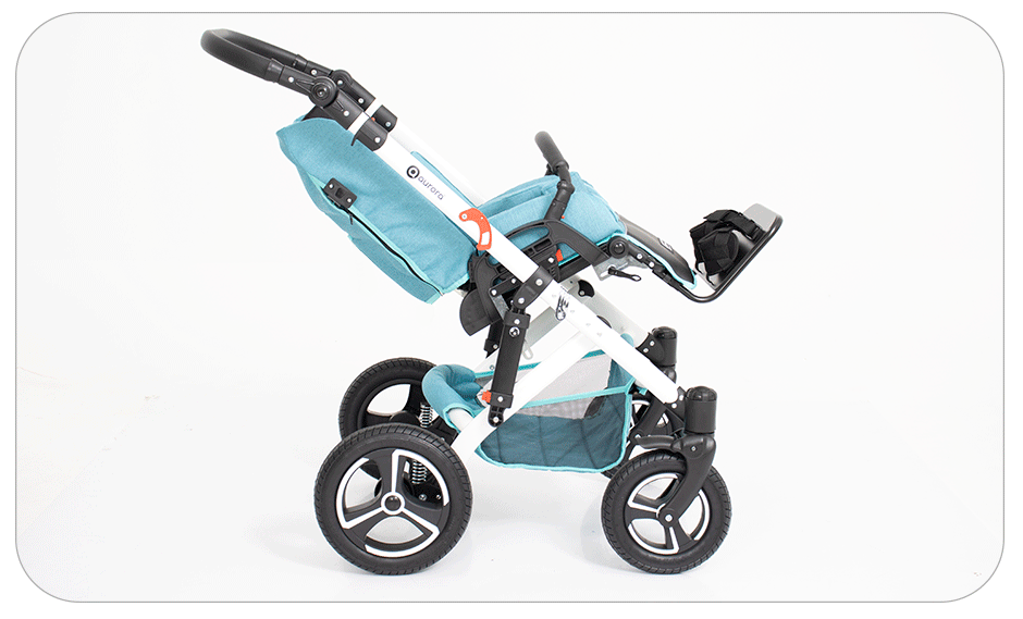 AURORA Engelli Çocuk Puseti ayarlanabilir gelişmiş amortisör ile donatılmıştır.Ön döner tekerlekler sayesinde, dar alanlarda yüksek manevra kabiliyeti ile rahatlıkla geçebilir.Ayarlanabilir katlanır güneşlik, bacak örtüsü, saklama sepeti ve çanta ve bir çok aksesuara sahiptir.